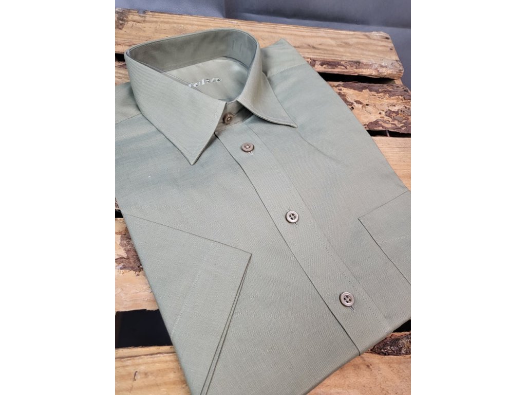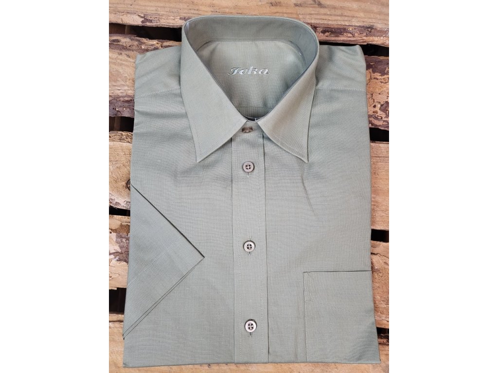 Pánská společenská košile s krátkým rukávem, je od firmy JOKA, český výrobek. Košile se hodí do obleku ale i k riflím. Je to klasický střih.