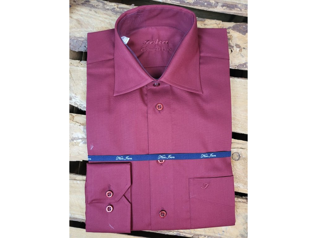 Pánská společenská košile s dlouhým rukávem, je od firmy JOKA, český výrobek. Košile se hodí do obleku ale i k riflím. Je to klasický střih. Košile má nežehlivou úpravu, tudíž košili stačí za mokra vyvěsit na ramínko a samo se vyrovná. U košile je přiložený přesný návod nebo popřípadě si jej můžete přečíst ve fotogalerii.