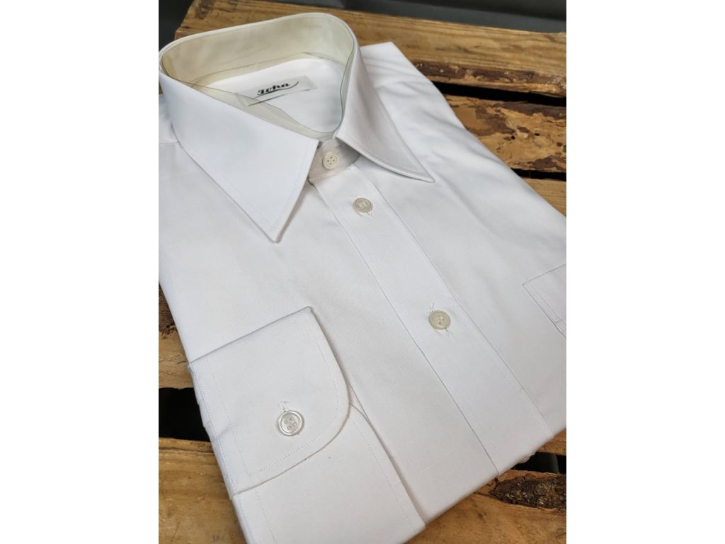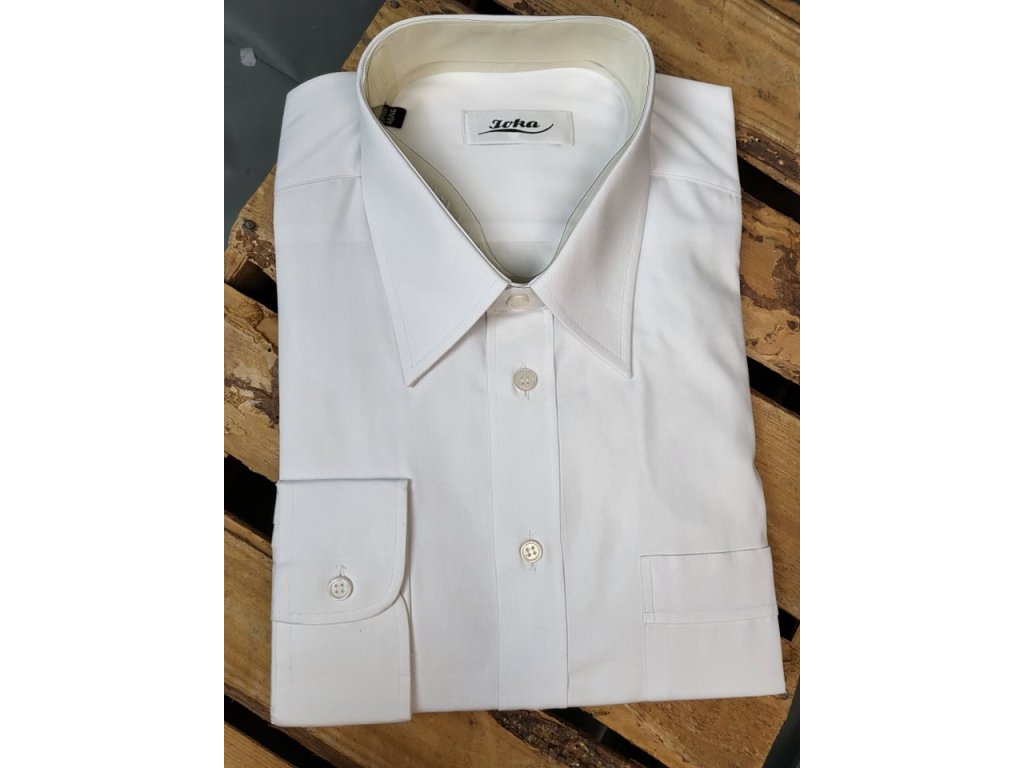 Pánská společenská košile s dlouhým rukávem, je od firmy JOKA, český výrobek. Košile se hodí do obleku ale i k riflím. Je to klasický střih.