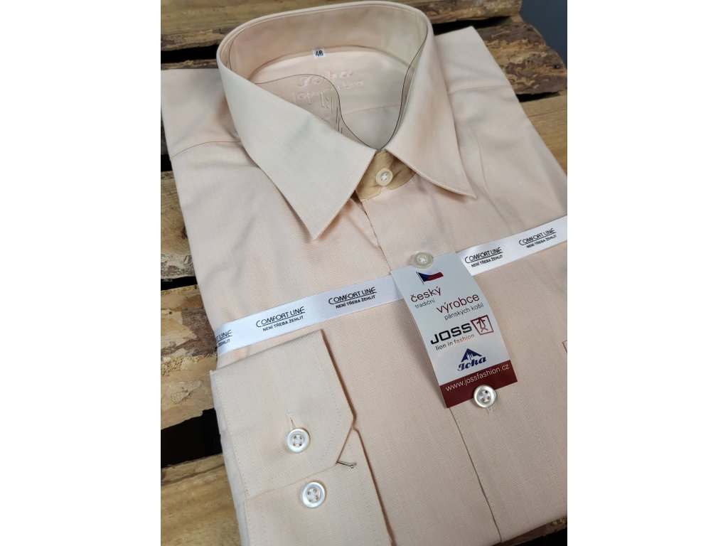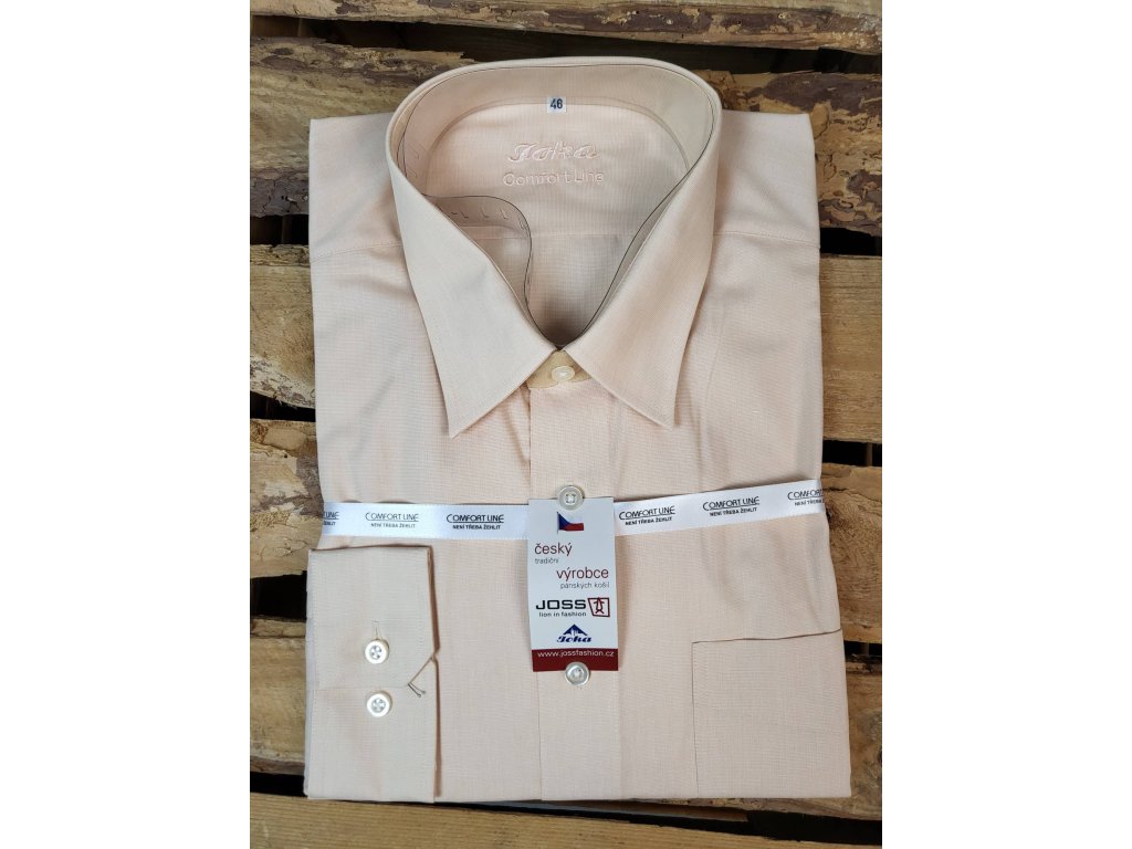 Pánská společenská košile s dlouhým rukávem, je od firmy JOKA, český výrobek. Košile se hodí do obleku ale i k riflím. Je to klasický střih. Košile má nežehlivou úpravu, tudíž košili stačí za mokra vyvěsit na ramínko a samo se vyrovná. U košile je přiložený přesný návod nebo popřípadě si jej můžete přečíst ve fotogalerii.