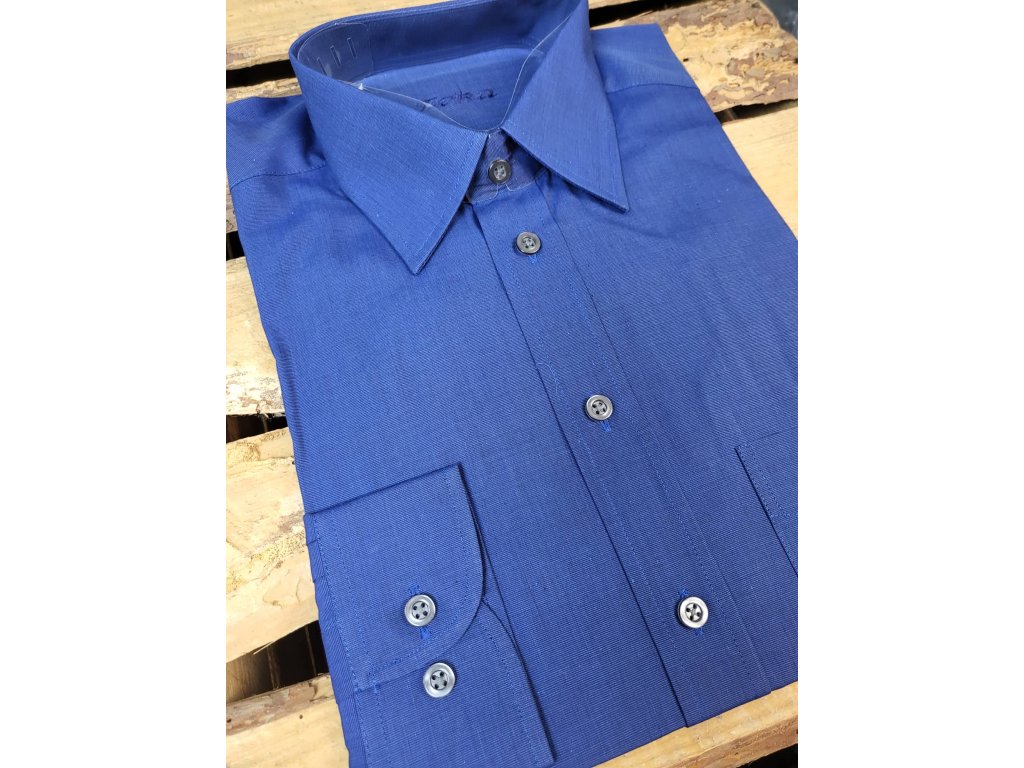 Pánská společenská košile s dlouhým rukávem, je od firmy JOKA, český výrobek. Košile se hodí do obleku ale i k riflím. Je to klasický střih. Košile má jednu náprsní kapsy.