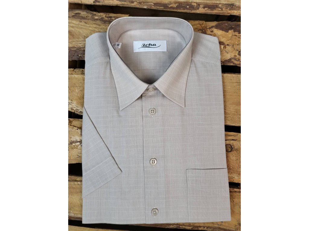 Pánská společenská košile s krátkým rukávem, je od firmy JOKA, český výrobek. Košile se hodí do obleku ale i k riflím. Je to klasický střih. Košile má jednu náprsní kapsy.