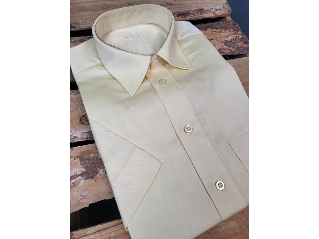Pánská společenská košile s krátkým rukávem, je od firmy JOKA, český výrobek. Košile se hodí do obleku ale i k riflím. Je to klasický střih. Košile má jednu náprsní kapsy.