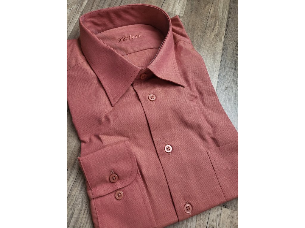 Pánská společenská košile s dlouhým rukávem, je to český výrobek. Košile se hodí do obleku ale i k riflím. Je to klasický střih, má jednu náprsní kapsu.
