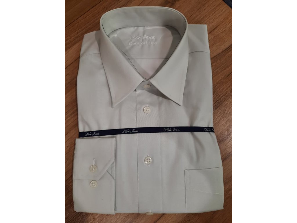 Pánská společenská košile s dlouhým rukávem, je od firmy JOKA, český výrobek. Košile se hodí do obleku ale i k riflím. Je to klasický střih. Má jednu náprsní kapsy. Košile má nežehlivou úpravu, tudíž košili stačí za mokra vyvěsit na ramínko a samo se vyrovná. U košile je přiložený přesný návod.