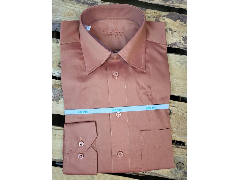 Pánská společenská košile s dlouhým rukávem, je od firmy JOKA, český výrobek. Košile se hodí do obleku ale i k riflím. Je to klasický střih. Košile má nežehlivou úpravu, tudíž košili stačí za mokra vyvěsit na ramínko a samo se vyrovná. U košile je přiložený přesný návod nebo popřípadě si jej můžete přečíst ve fotogalerii.