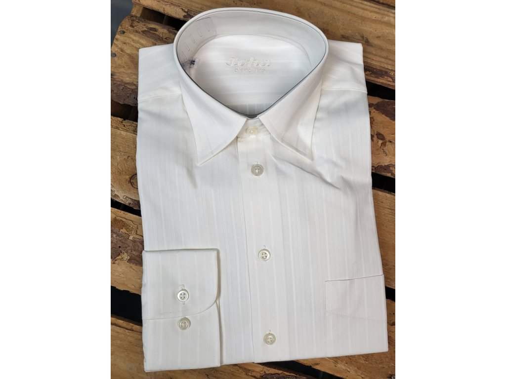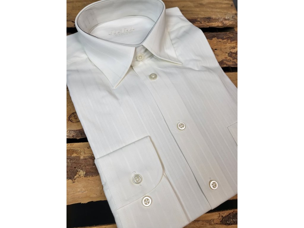 Pánská společenská košile s dlouhým rukávem, je od firmy JOKA, český výrobek. Košile se hodí do obleku ale i k riflím. Je to klasický střih. Košile má jednu náprsní kapsu, je zdobená jemným pruhem.