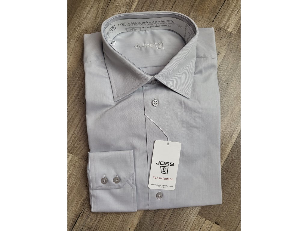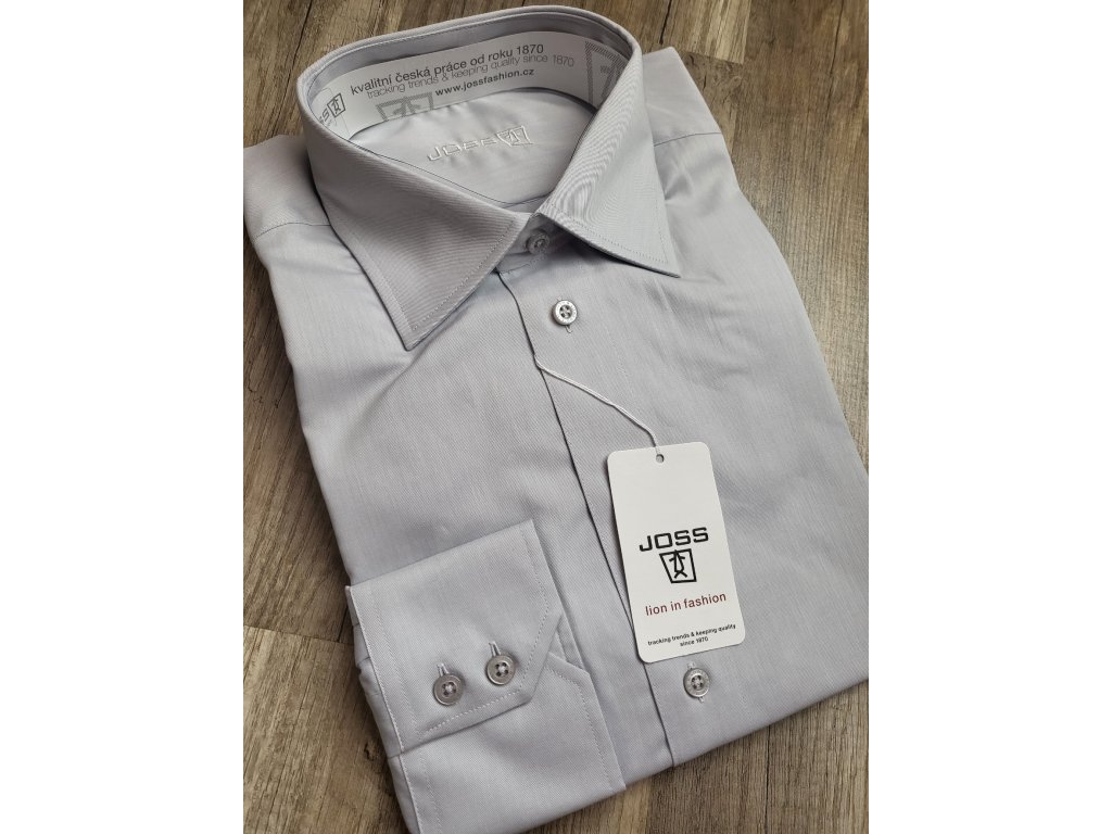 Pánská společenská košile s dlouhým rukávem, je to český výrobek. Košile se hodí do obleku ale i k riflím. Je to zúžený střih - slim, má jednu náprsní kapsy. Košile má nežehlivou úpravu, tudíž košili stačí za mokra vyvěsit na ramínko a samo se vyrovná. U košile je přiložený přesný návod.
