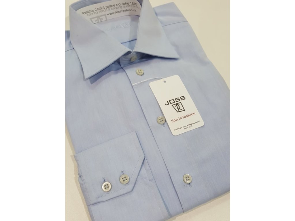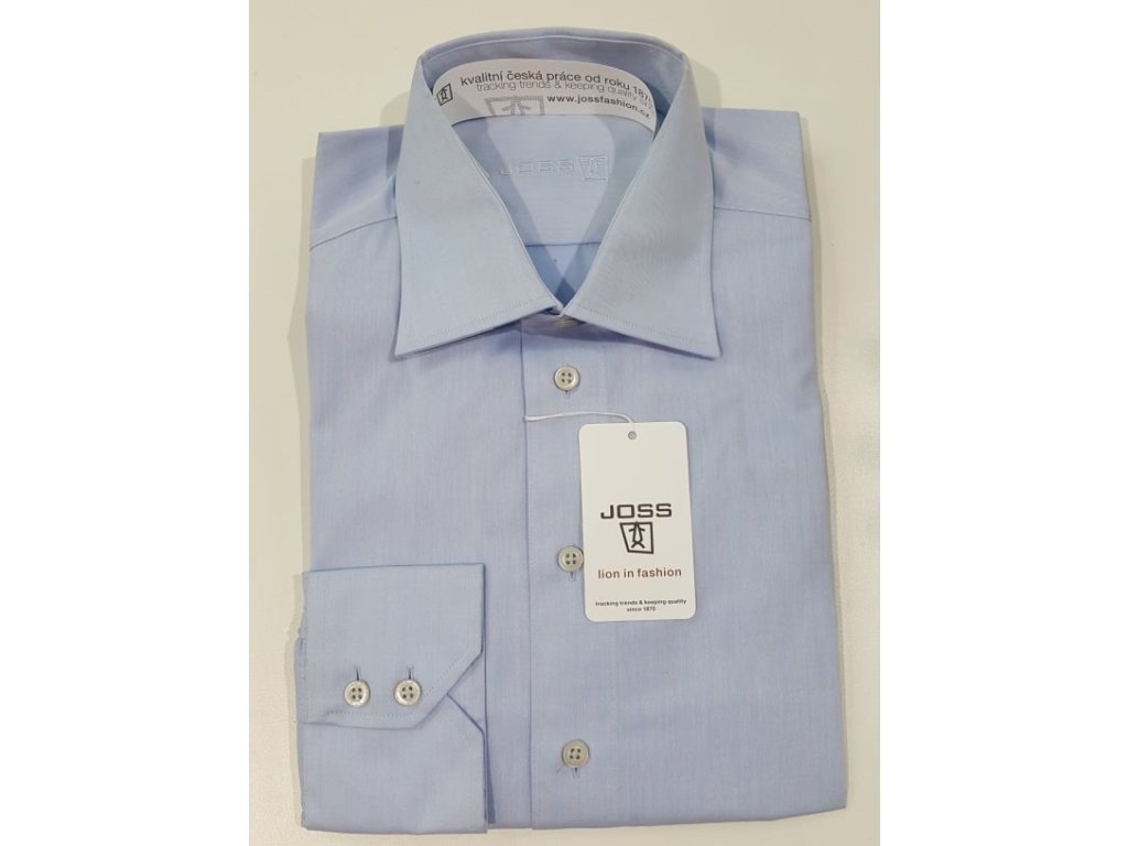 Pánská společenská košile s dlouhým rukávem, je od firmy JOSS, český výrobek. Košile se hodí do obleku ale i k riflím. Je to rovný střih - zúžený - slim efekt. Košile má nežehlivou úpravu, tudíž košili stačí za mokra vyvěsit na ramínko a samo se vyrovná. U košile je přiložený přesný návod nebo popřípadě si jej můžete přečíst ve fotogalerii.