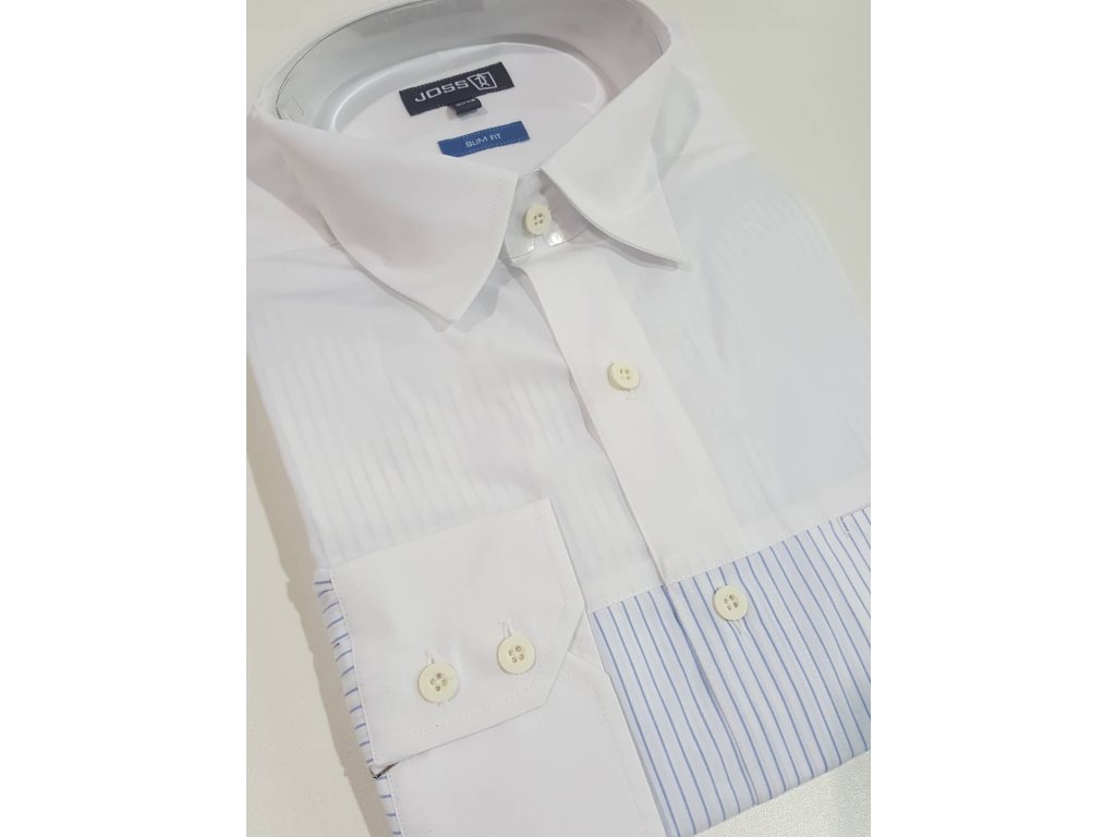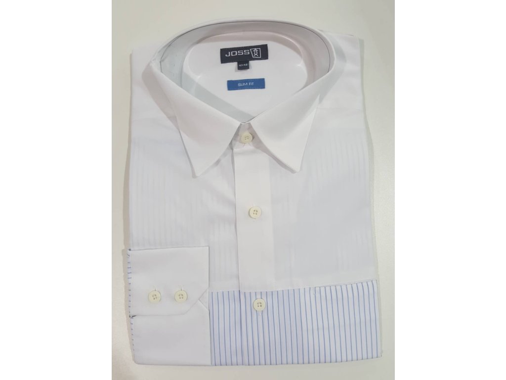Pánská společenská košile s dlouhým rukávem, je od firmy JOSS, český výrobek. Košile se hodí do obleku ale i k riflím. Je to slim fit střih, tedy zúžený.