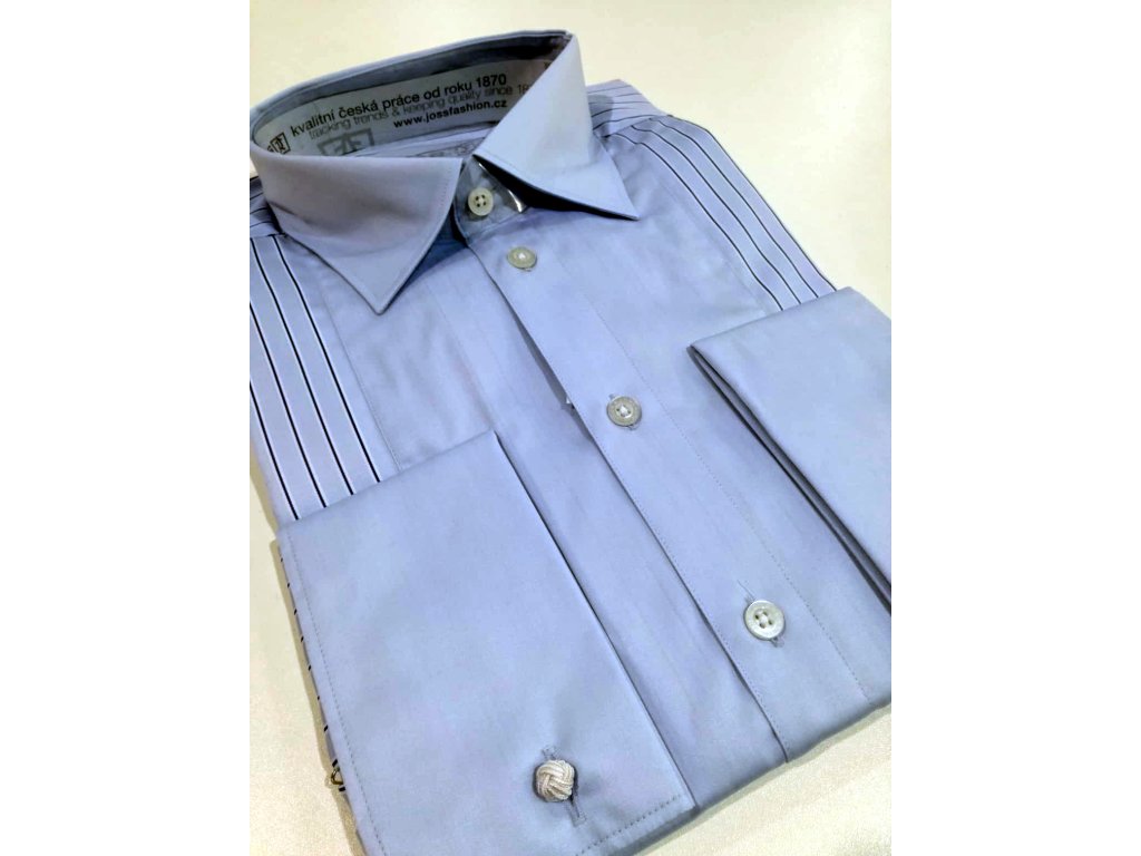 Pánská společenská košile s dlouhým rukávem, je od firmy OP Prostějov, tudíž český výrobek. Košile se hodí do obleku ale i k riflím. Je to zúžený střih. Rukávy jsou na manžetový knoflíček. Košile má nežehlivou úpravu, tudíž košili stačí za mokra vyvěsit na ramínko a samo se vyrovná. U košile je přiložený přesný návod nebo popřípadě si jej můžete přečíst ve fotogalerii.