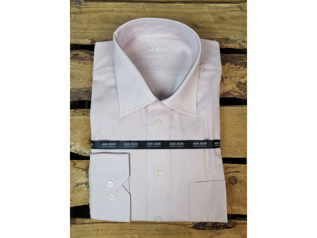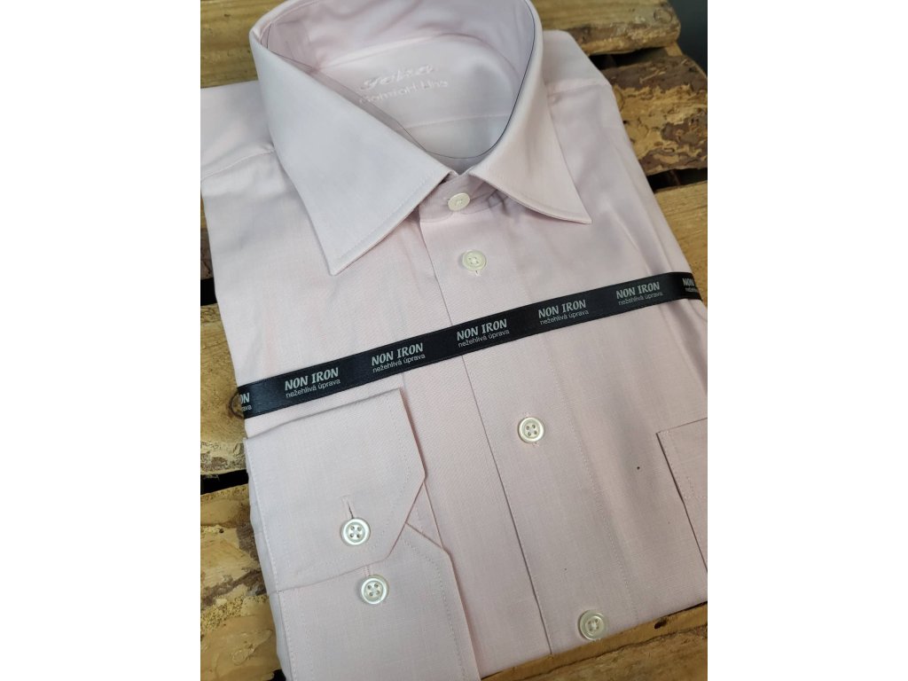 Pánská společenská košile s dlouhým rukávem, je od firmy JOKA, český výrobek. Košile se hodí do obleku ale i k riflím. Je to klasický střih. Košile má nežehlivou úpravu, tudíž košili stačí za mokra vyvěsit na ramínko a samo se vyrovná. U košile je přiložený přesný návod nebo popřípadě si jej můžete přečíst ve fotogalerii.