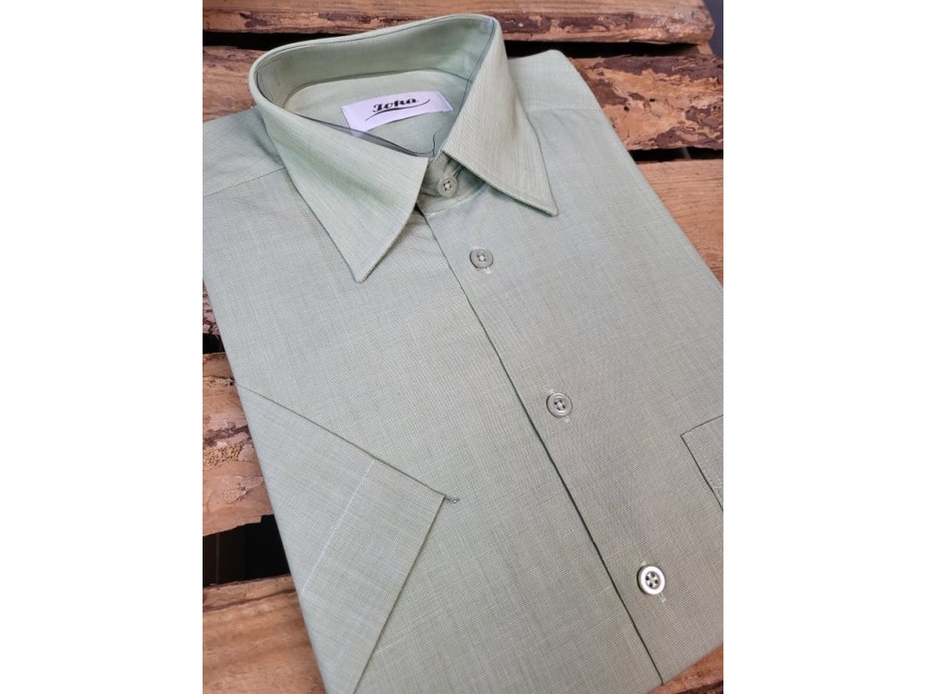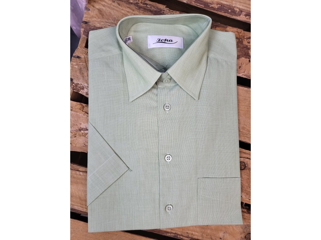 Pánská společenská košile s krátkým rukávem, je od firmy JOKA, český výrobek. Košile se hodí do obleku ale i k riflím. Je to klasický střih. Košile má jednu náprsní kapsu.